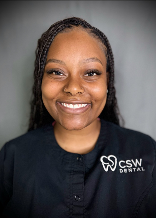 Judy has been a dental assistant with CSW Dental since 2004. Inspired by her braces journey, she pursued dentistry to help others smile with confidence. Her mom taught her to lead with kindness, and friends describe her as positive, happy, and thoughtful.